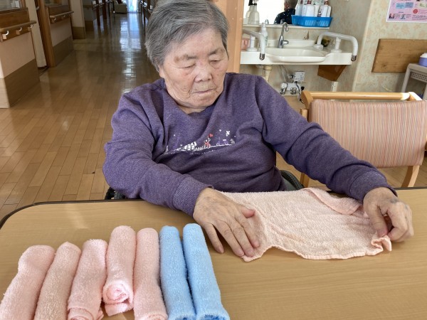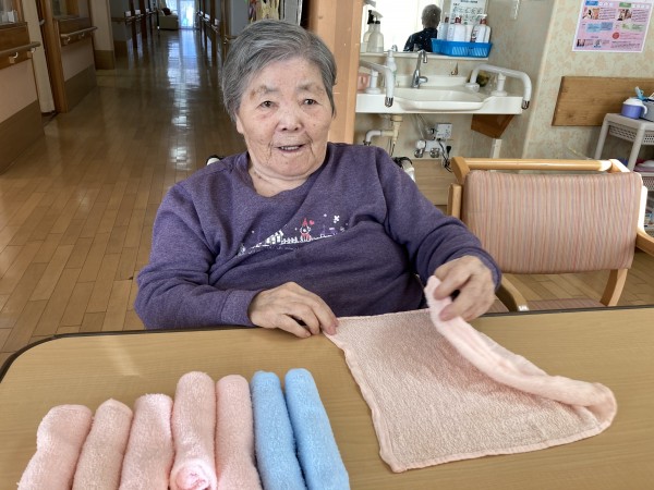 今日も音楽を聞きながら手際よく、布巾をたたんでくださっています。