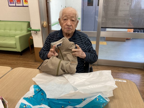 今日はお誕生日会をおこない、ご家族さまより、干し柿と洋服のプレゼントをいただきました!(^^)!