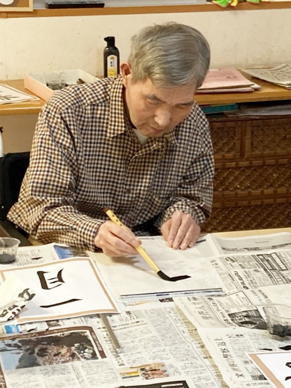 背中が丸まっている方も、筆を持つと背筋がまっすぐに!