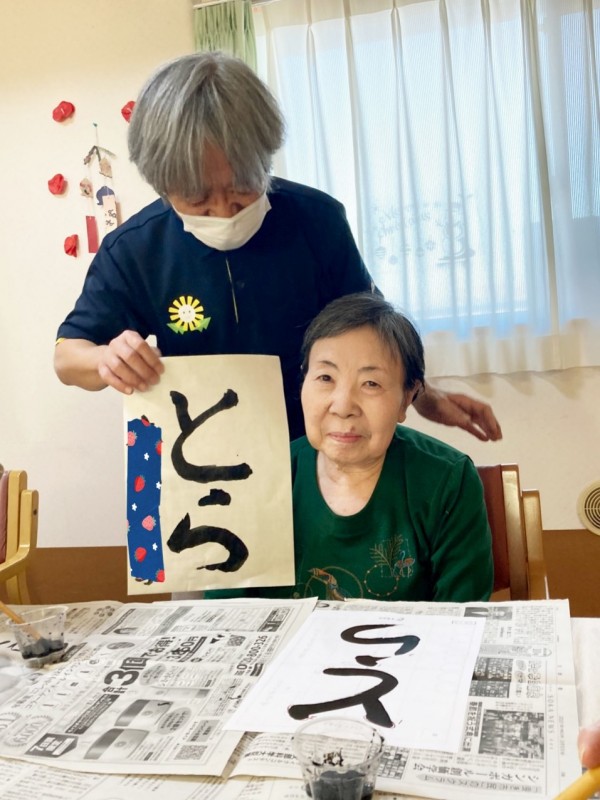K様は職員と一緒に寅年の『とら』を書いて下さりました♪「上手くかけたわぁー」と喜んでくださいました。