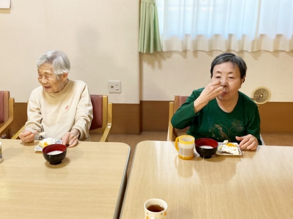 甘酒と職員の手作り甘酒マロンチーズケーキを召し上がりました。