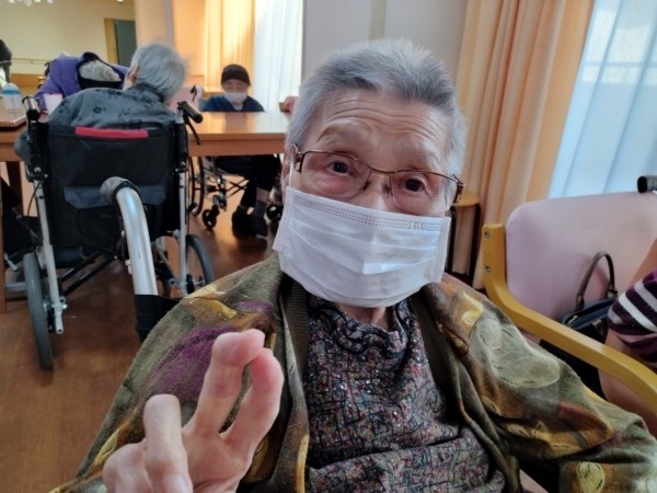 こっちも、撮影者がしくじってVサインが指先しか写ってない。。。