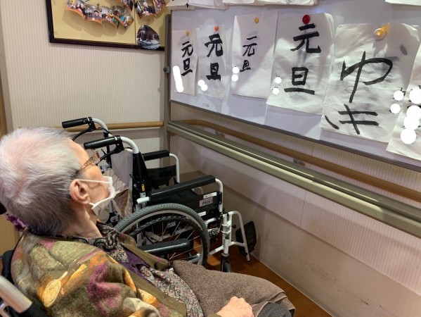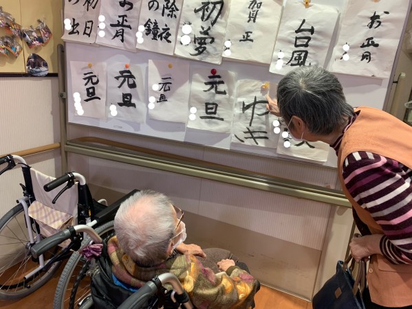 先月の書道レクリエーションのものを見ていらっしゃいます。
