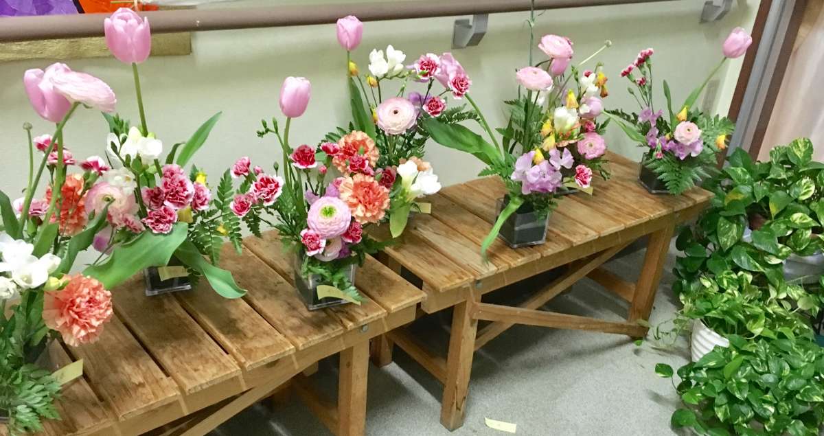 お花を飾るのって、その方の精神状態であったりその日の気持ちであったりで、変わりますよね( ^ω^ )今回はボランティアさんにきていただき季節の花を利用者様に飾って頂きました(=´∀`)人(´∀`=)