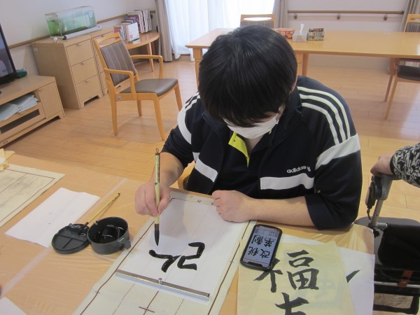 ★☆新年の書初め習字レクリエーション 木村光陽ホーム長の今年の抱負♬(^^♬ 『みんなの家・三橋6丁目』☆★
