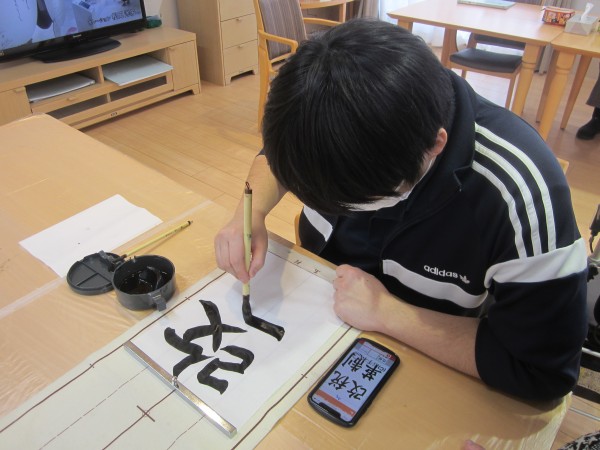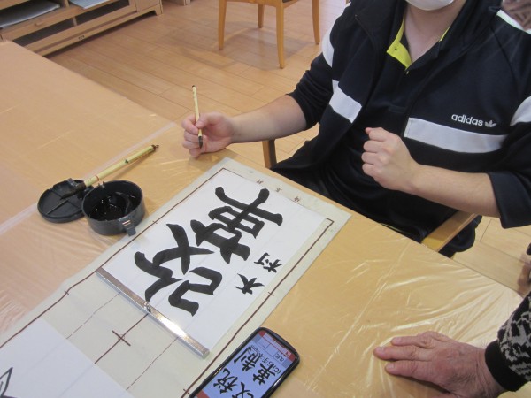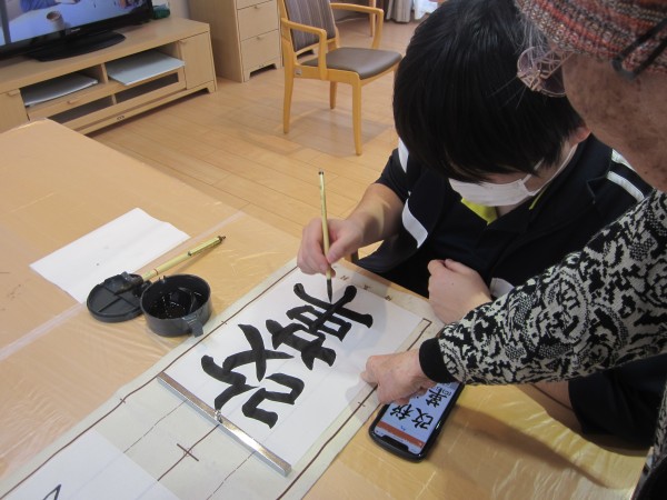 木村光陽ホーム長の書初めの記念撮影を一部紹介!!