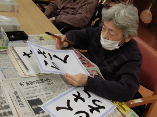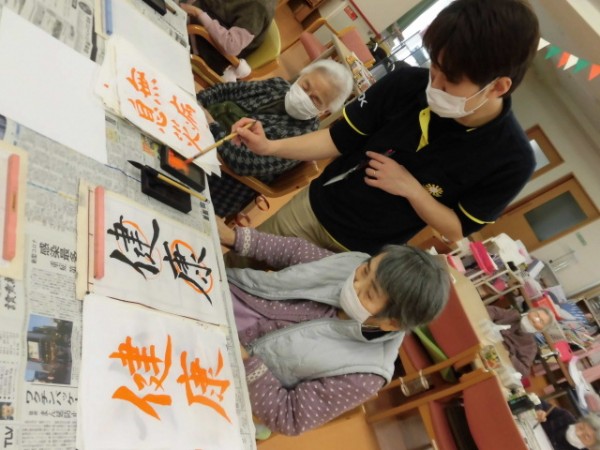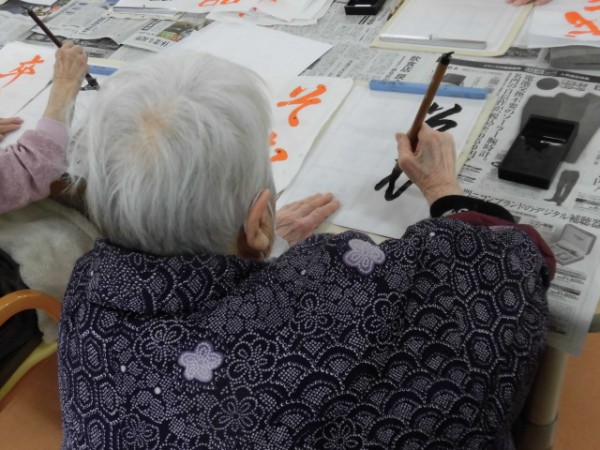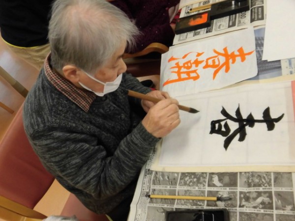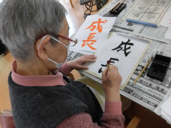 本日は「書道」を行いました!新年の書道はまた違った感じになりますからね