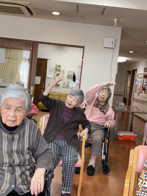 「大きく吸って」「両手を上げて」「吸ってー」「吐いてー」と、皆さん一生懸命に体を動かされました。