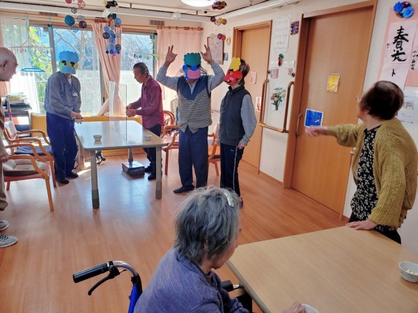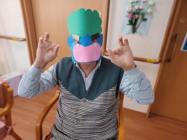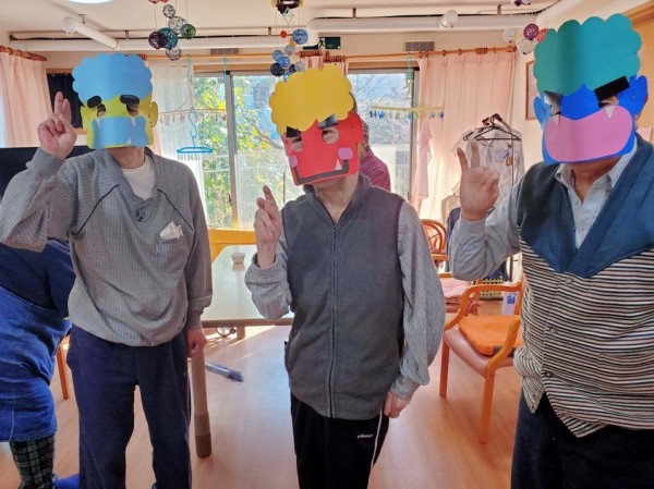 今回は、両ユニット共に立候補して下さった利用者様にお面をかぶっていただきました。