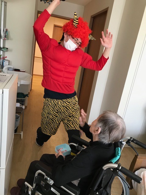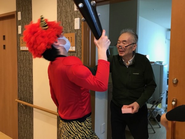 「鬼は外~鬼は外~福は内~」と大きな声を出し、鬼退治をしてくださいました!