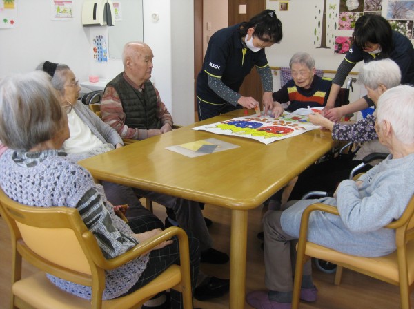 今回は、節分の季節なので鬼の貼り絵を行いました(^^)/