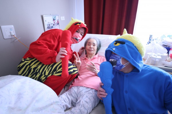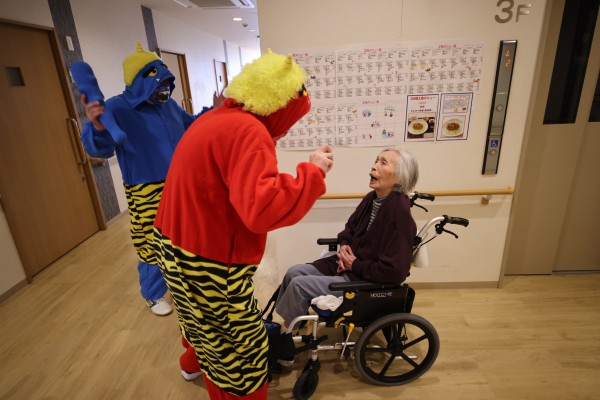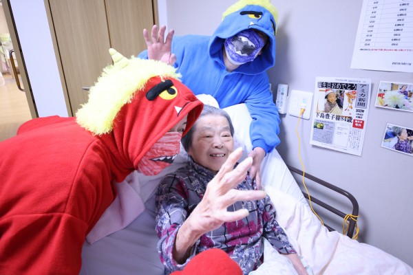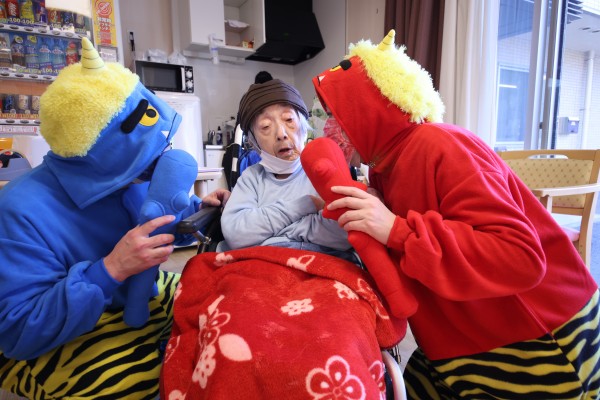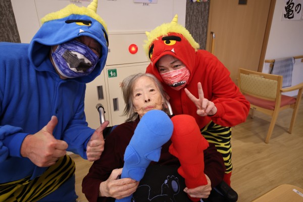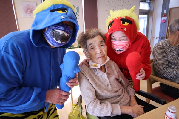 と…利用者さまが油断している隙に、素早く赤鬼&青鬼が室内に乱入して、大暴れ!