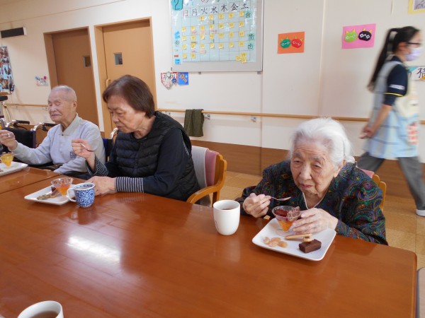 皆様楽しいひと時を過ごされ、甘い物を召し上がった後は、いきいきリズム体操で体を動かしました。