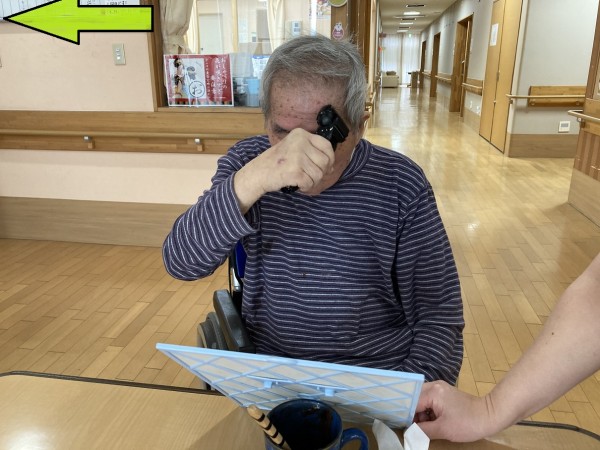 ご自分でマグカップに鏡を立て掛け『支えなくて良いよ』