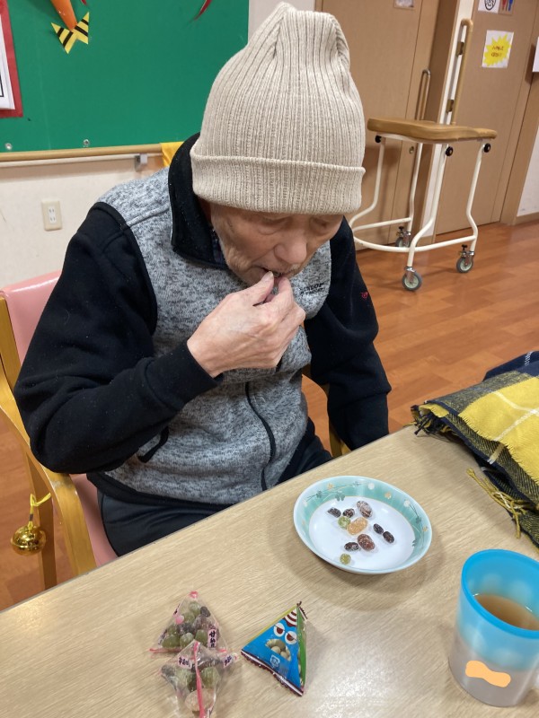 無事に鬼を追い払った後はおやつに甘納豆を召し上がりました