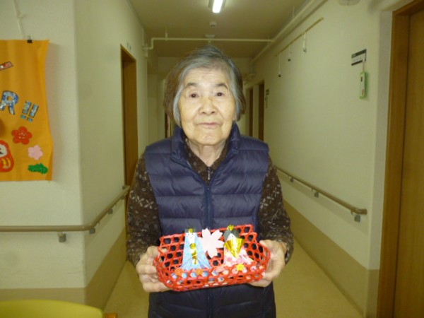 職員により小さなひな人形を作りました。