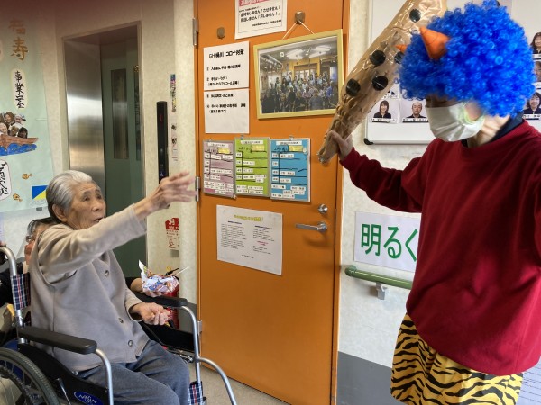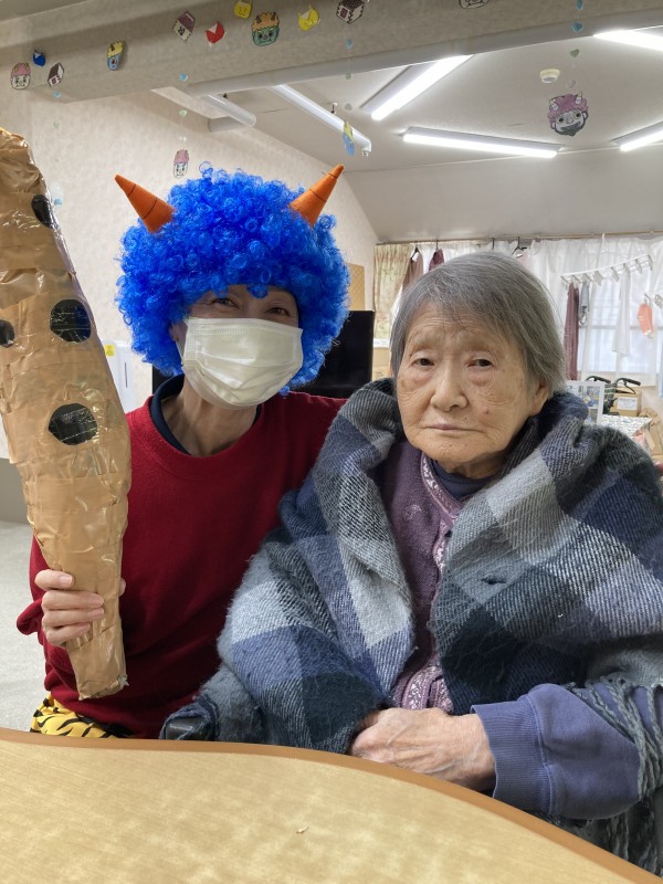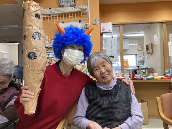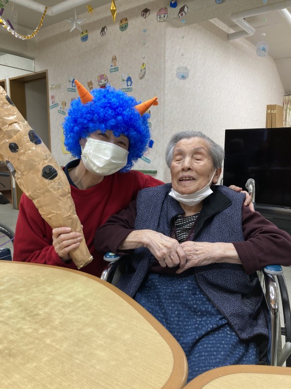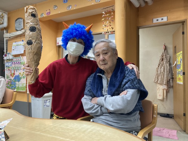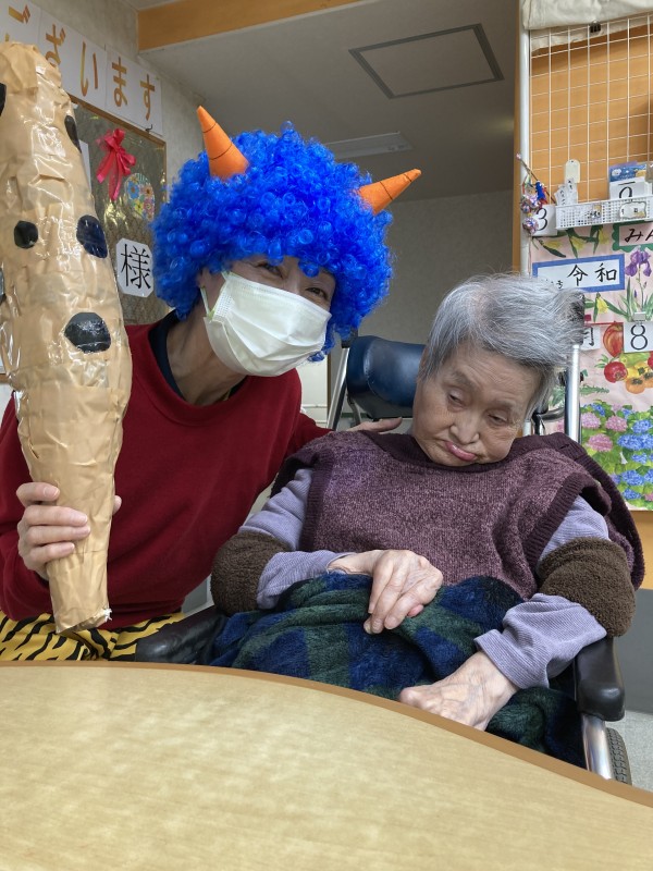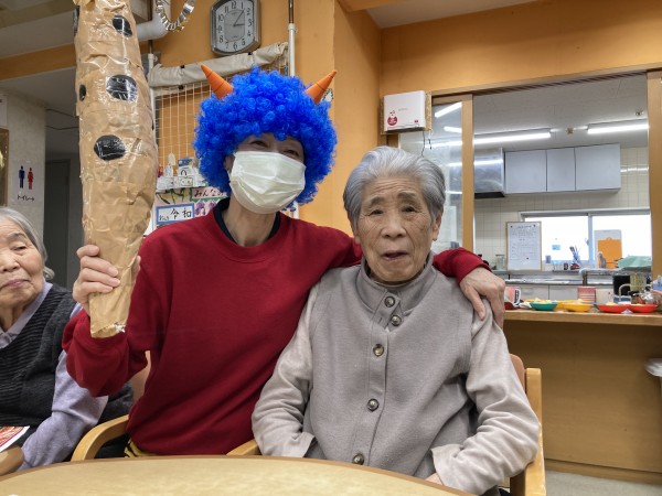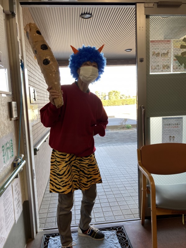 先日、豆まきを行いました。鬼は恒例のフロア長です!