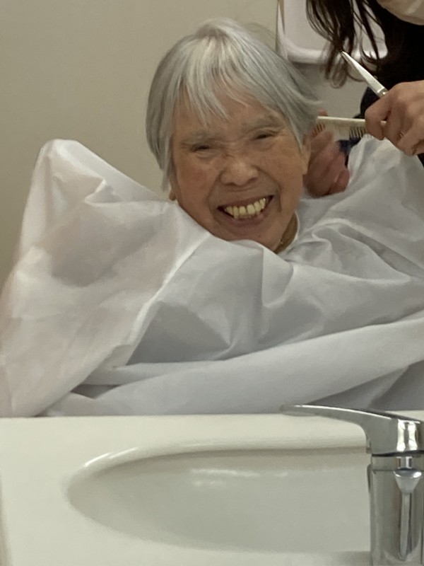利用者様の髪の毛ものびてくるので、定期的に訪問美容師さんに来ていただいてます(^_^)v