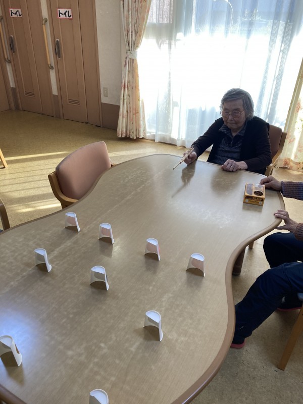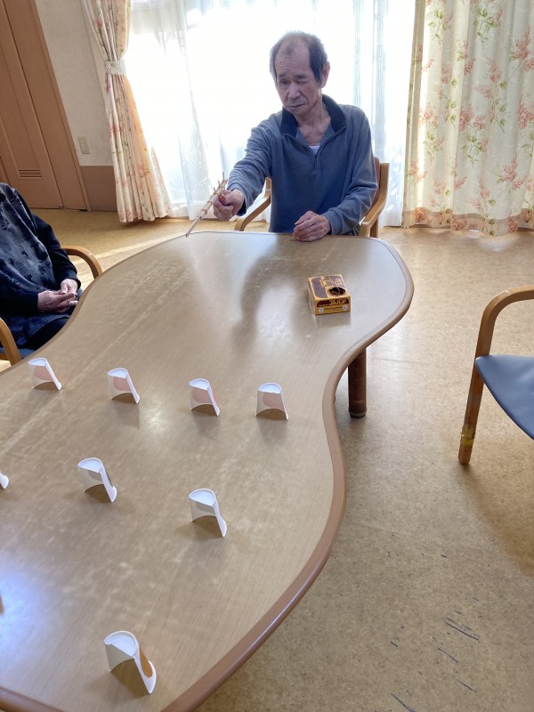 先日、割り箸で、ゴム鉄砲を作り射的を行いました。