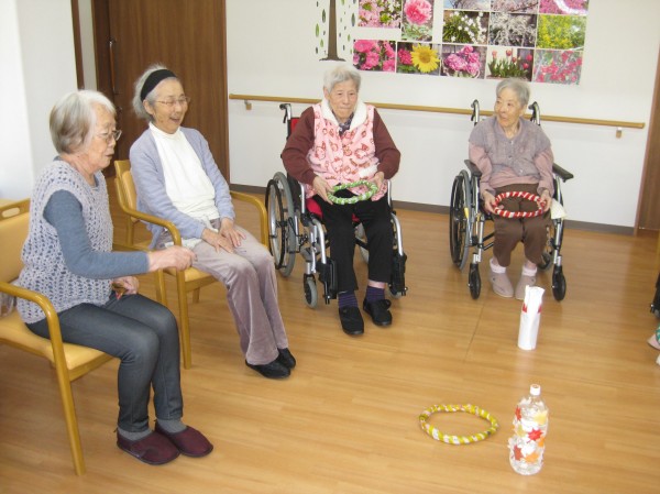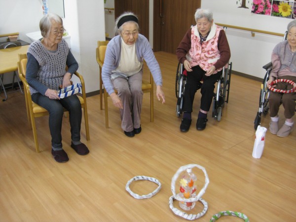こんにちは!グループホームみんなの家・あきがせの介護ブログです!よろしくお願いいたします。輪投げ遊びのご様子です!!