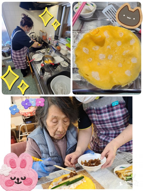 N職員が「黄金巻って言うんですよ」と言うとI様も「卵が黄色だから黄金巻なのね」と納得されておりました。