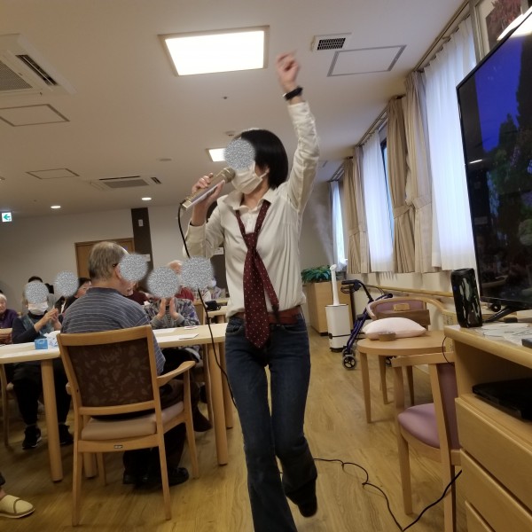 こんにちは。職員1発芸の様子です(^_-)-☆