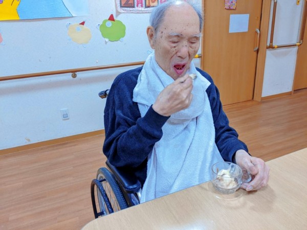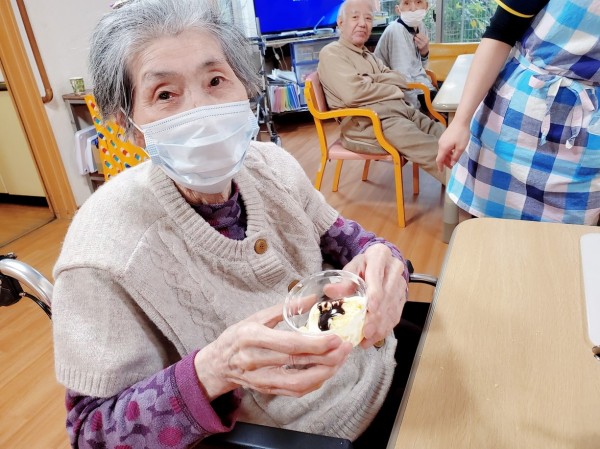※男性利用者様、現在ミキサー食対応をしています。その為チョコレートパフェではなく、バニラアイスチョコソースをつくりました。