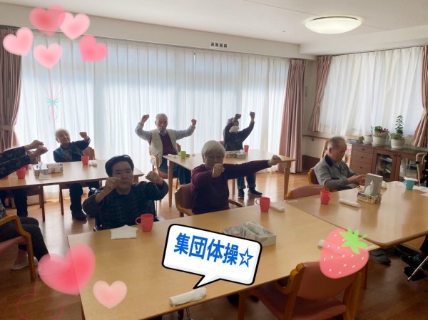 さて、二階フロアではお食事前に『集団体操・口腔体操・早口言葉』に皆様大変意欲的に参加されていました。