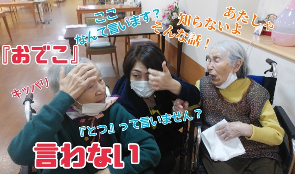(もう一人の奥様に)ここ、なんて言います?〈とつ〉?』