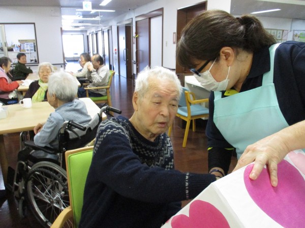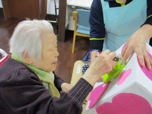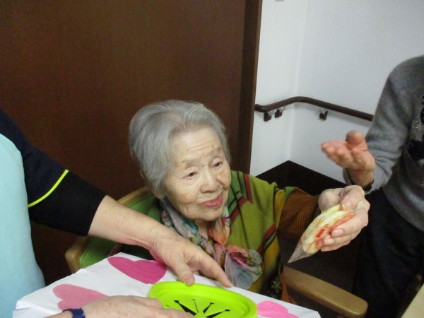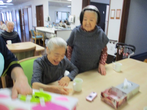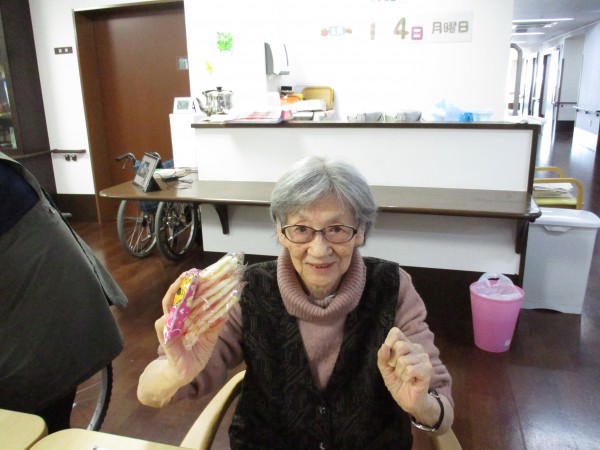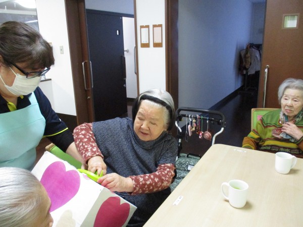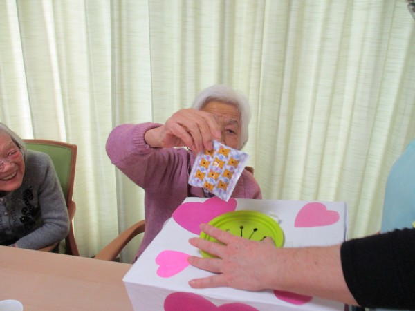 2月14日はバレンタイン企画という事で午後のお茶の時間に【お菓子のつかみ取り】を行いました(^^♪