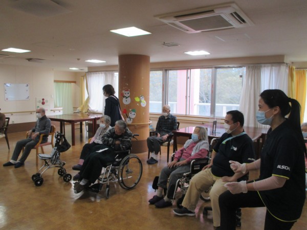 ご利用者様も、職員も、いきいきとノーアエクササイズの体操に、取り組まれていました(*'▽')