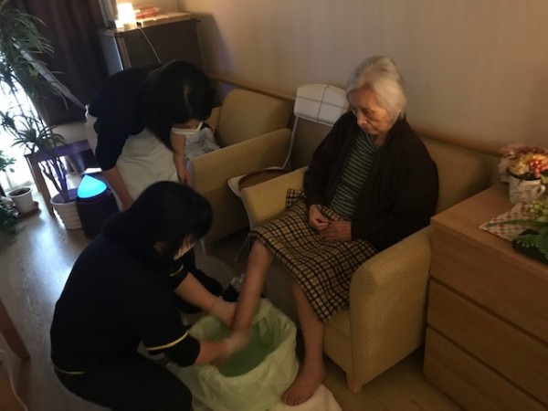 当施設トップエステティシャン(笑)、セラピスト(笑)によるフットケアの施術を行いましたぁ!