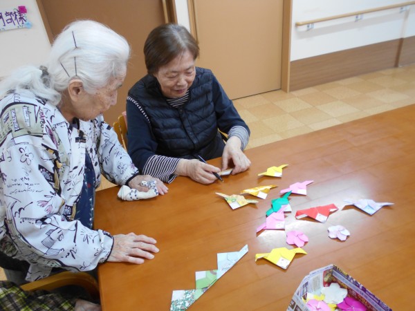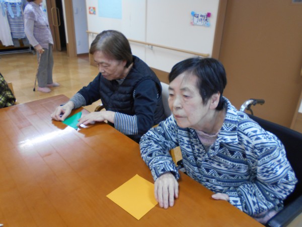 手作りの大好きなご利用者様が集まって、お話しながら楽しくひな人形を作っておられます。