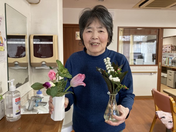 新しい切り花を、お花の大好きな利用者様が活けてくださいました(*^^*)