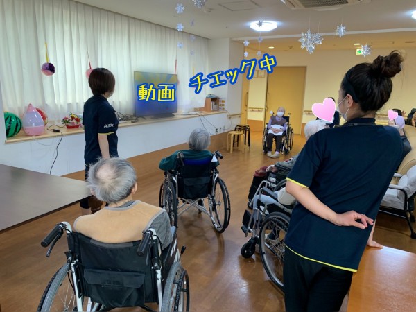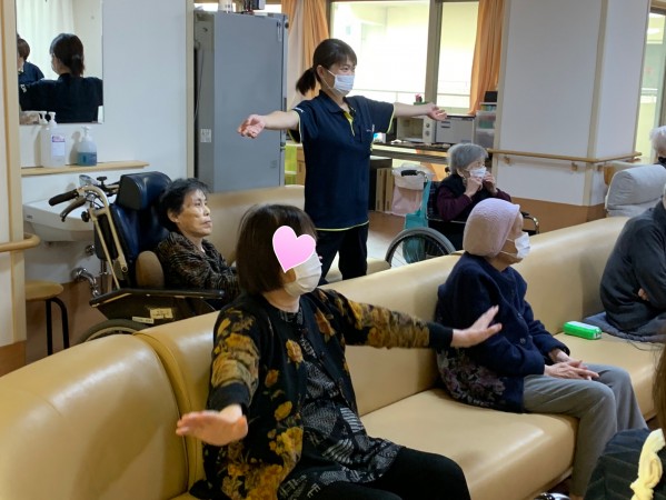 入居者様も一緒に練習します。