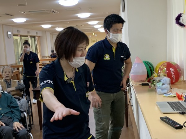 入居者様と職員が一緒になって練習をします。