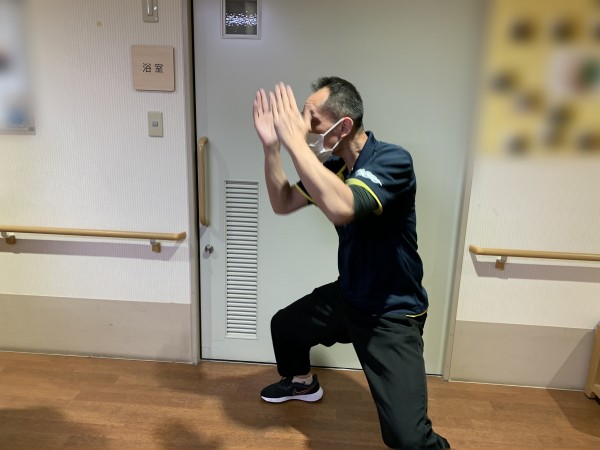 3月にやる、踊りを浴室前で入居者様に見ていただいています。