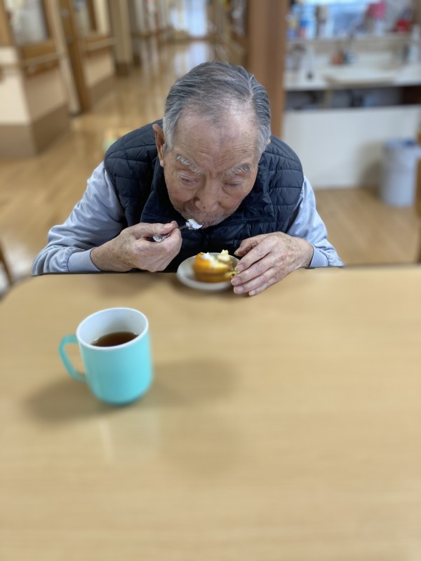 そして、おやつには手作りのみかんのケーキを召し上がっていただきました。