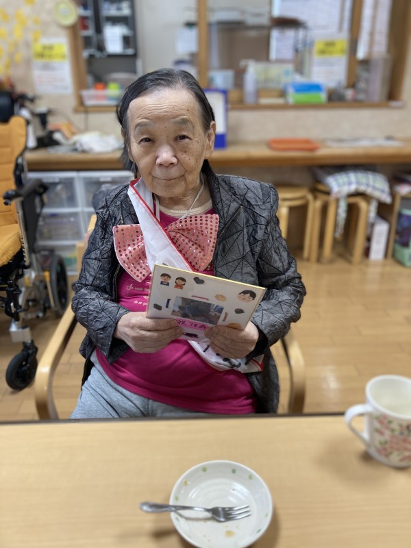 職員手作りのメッセージカードと皆さんで一緒にバースデ-ソングを贈らせて頂きました。