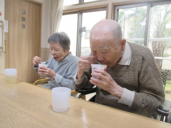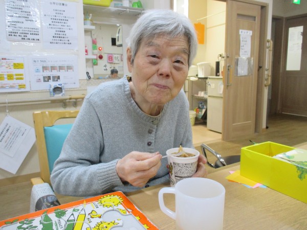 熱いラーメンをふうふうしながら、「おいしいよ」と喜んで下さいました。