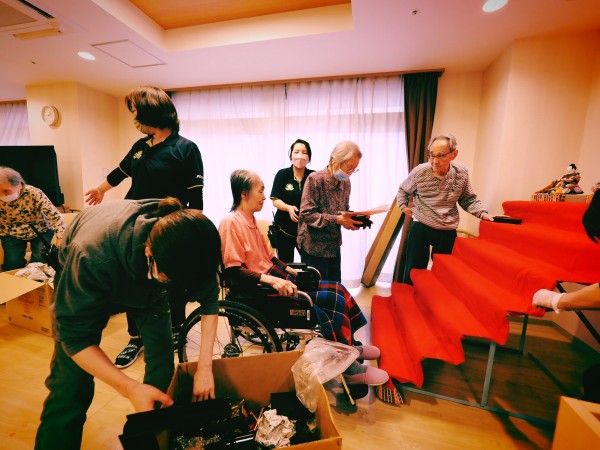 ワイワイ、皆さんと飾り付けいたします(^^)