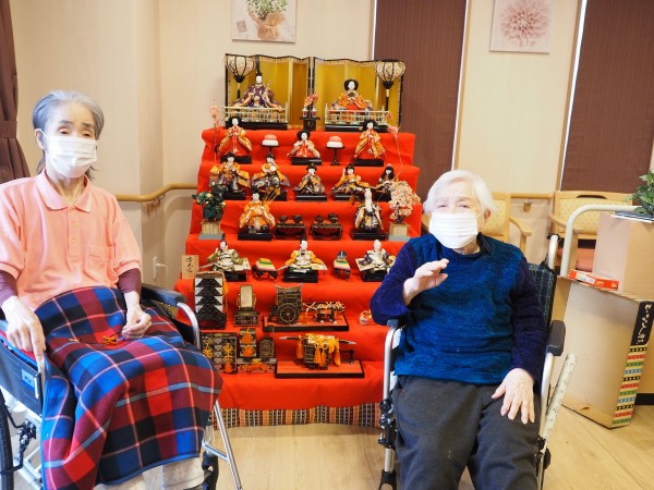 ひな人形の飾りを皆さんでいたしましたぁ‼
