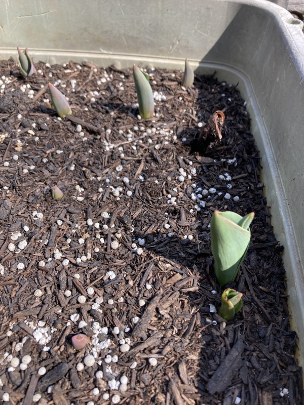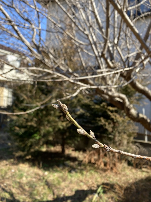梅が咲き、チューリップの芽も顔を出し…まだ固いですが桃の花の蕾も膨らみ始めています。