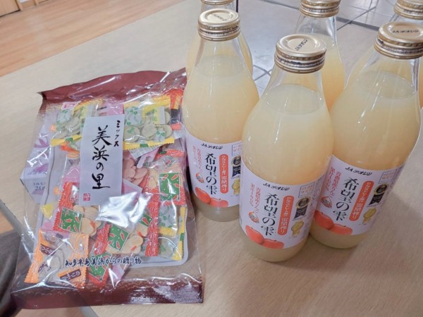今回の介護ブログは、なんと!昨年の私達のブログ「久地リンピック!」にて賞を頂き、賞品としてりんごジュースとおせんべいを頂きました!!
