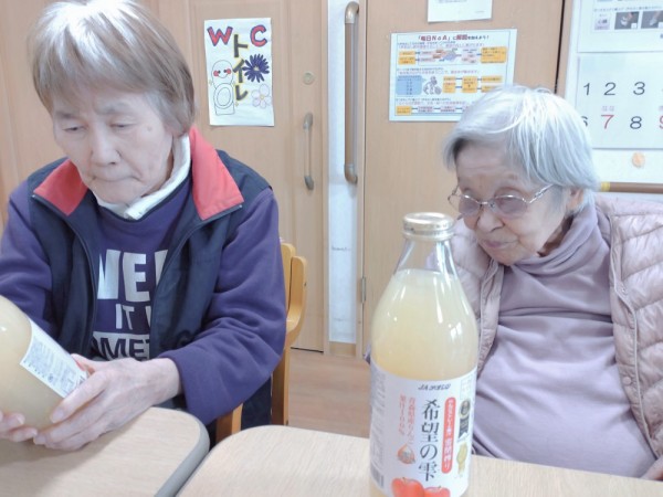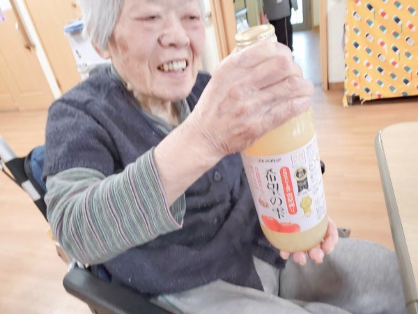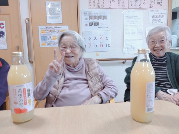 ●○グループホームみんなの家・川崎久地「美味しいりんごジュースとおやつのおせんべい」○●