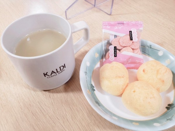 特別なリンゴジュースに、一緒に頂いたおせんべい。