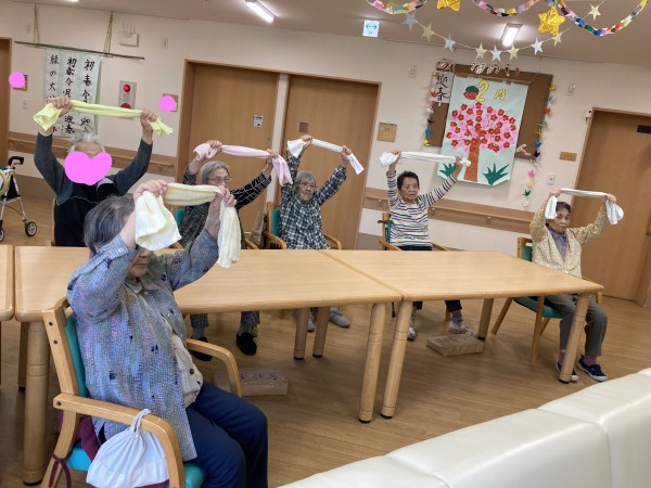 タオルを使っての体操のご様子です。