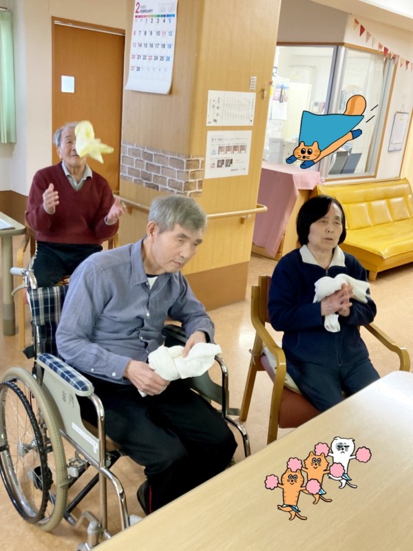 グループホームみんなの家大宮三橋 3階 2月11日 AKトレーニング(タオル体操)