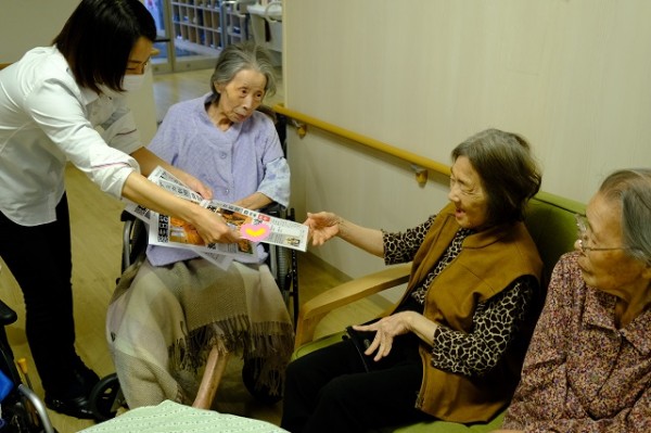 お誕生日を迎える方たちには、毎回、当施設内で独自作成している「アミカ新聞」でお祝いメッセージを添えてプレゼント(^^♪