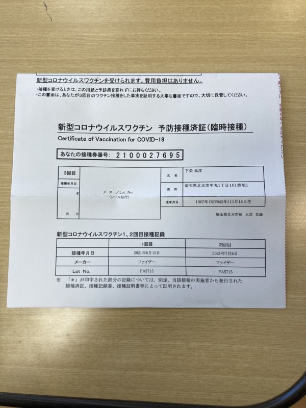 入居者様の3回目ワクチン接種ですが、3/14にて全て完了の